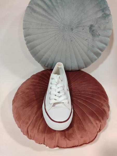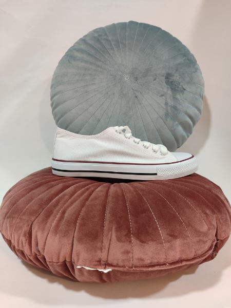 Su diseño atemporal con puntera redondeada , suela de goma y cordones blancos  te da ese estilo casual que nunca falla . La BAMBA BLANCA  están hechas con lona transpirable para que te acompañen cómodamente todo el día ,ya sea en un paseo o en  tu próxima escapada